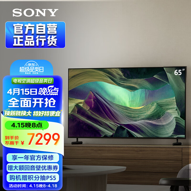 索尼(SONY)【官方直营】KD-65X85L 65英寸 4K HDR 屏智能电视 广色域 120Hz高刷 X1芯片 京配上门价格:7299.00元!