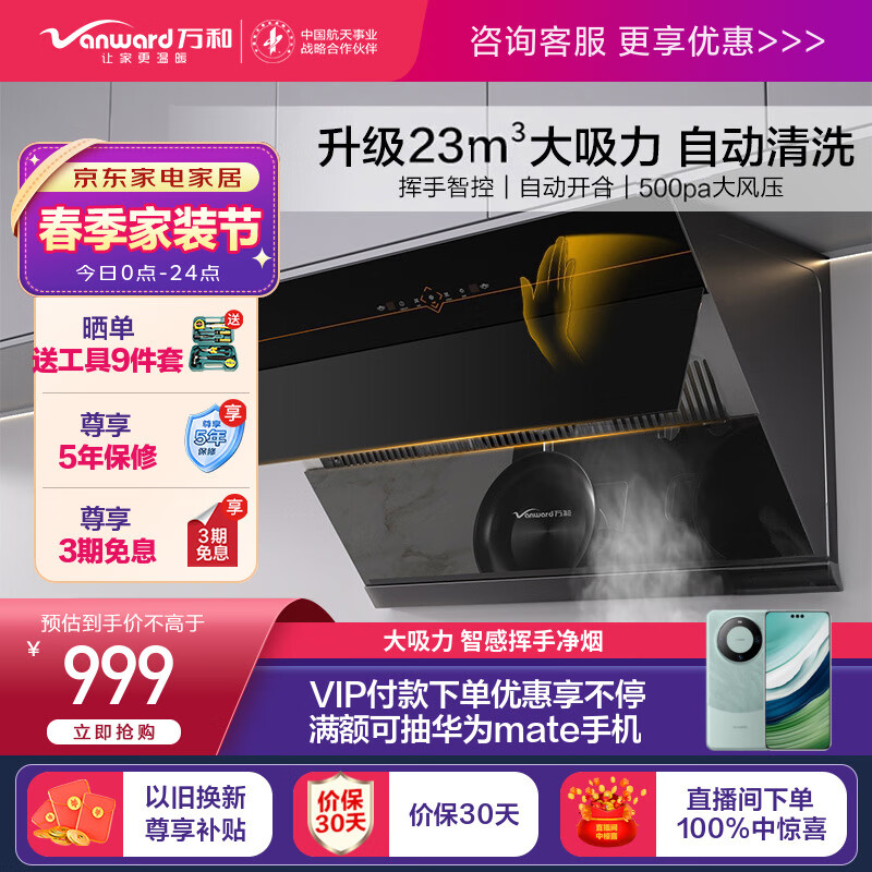 万和(Vanward)侧吸式抽油烟机家用厨房油烟机 23立方米大吸力 脱排油烟机排油烟机 自清洗挥手智控吸油烟机DJ738价格:1299.00元!