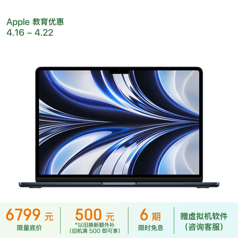 Apple/苹果2022款MacBookAir【教育优惠】13.6英寸M2(8+8核)8G256G午夜色轻薄笔记本电脑MLY33CH/A价格:8199.00元!