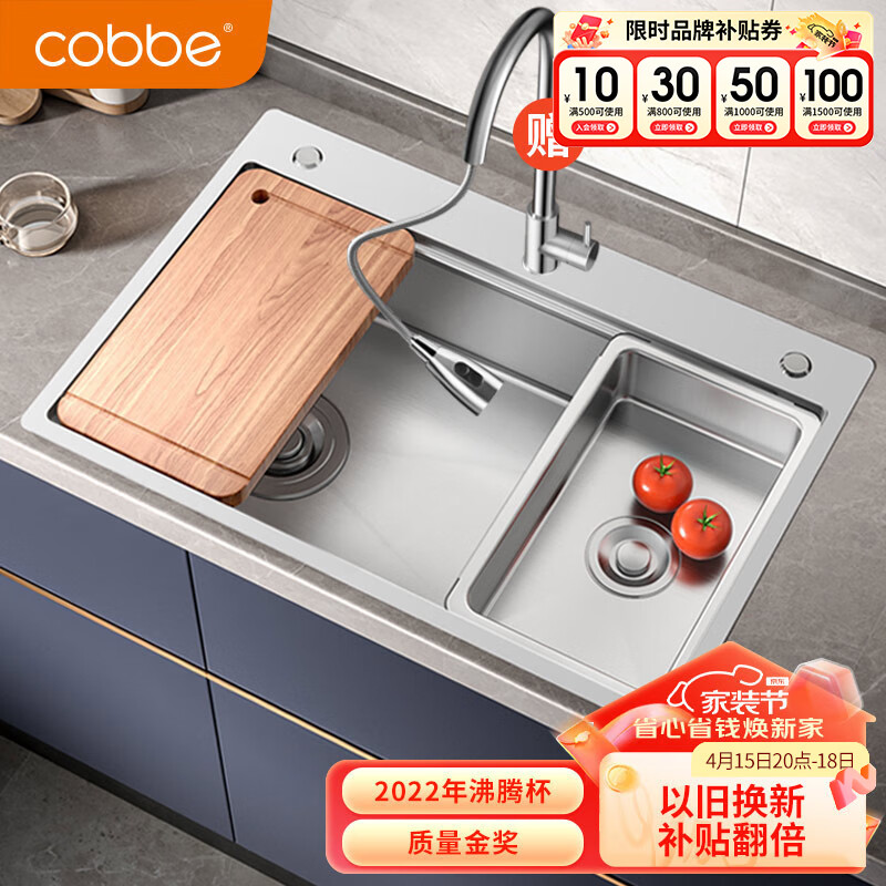 卡贝(cobbe)304不锈钢水槽手工大单槽厨房洗手洗菜盆家用台上盆淘菜洗碗水池价格:828.00元!