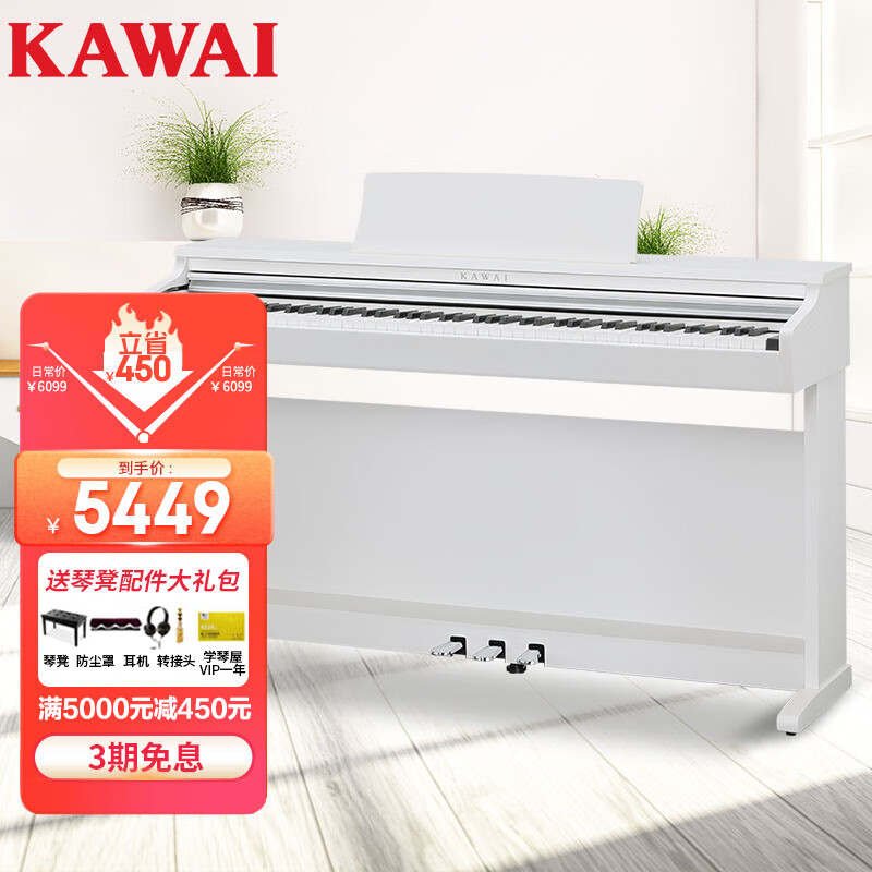 卡瓦依(KAWAI)电钢琴KDP120GW 88键重锤 电子数码钢琴成人儿童初学专业家用价格:5899.00元!