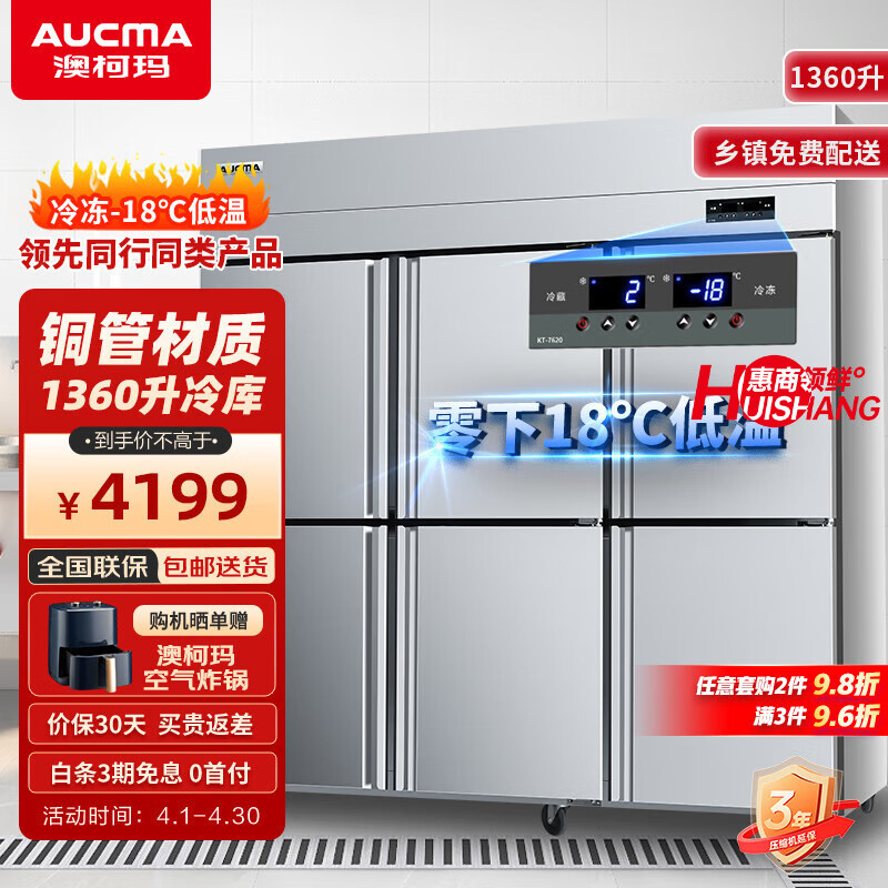 澳柯玛(AUCMA)四门冰箱商用冰柜立式冷冻柜六门冰箱大容量饭店食堂餐饮店后厨不锈钢厨房冰箱保鲜柜冷柜 六门双温1360升 VCF-1360AJ价格:4199.00元!