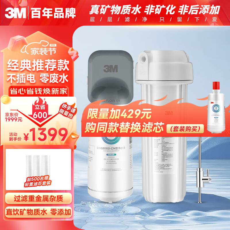 3M净水器家用净水机矿物质0废水直饮厨下2L/分大流量600G过滤器 DWS2000 CN价格:1699.00元!