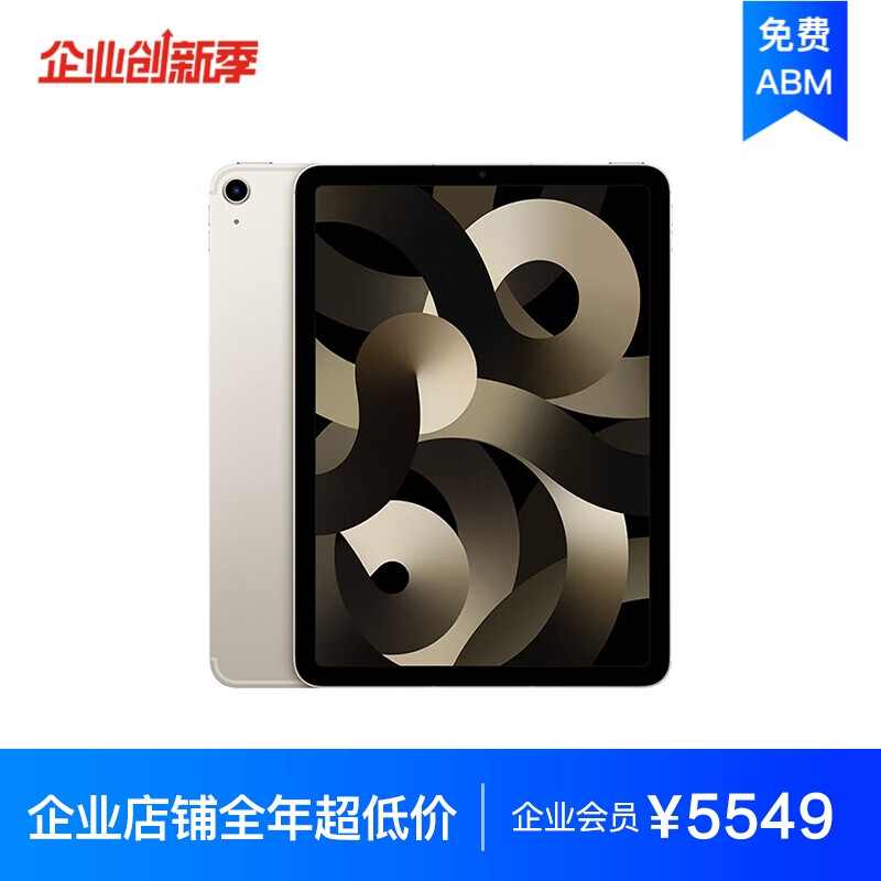 Apple iPad Air 10.9英寸平板电脑 2022年款(64G WLAN+Cellular版/M1芯片 MM783CH/A)星光色*企业专享价格:5999.00元!