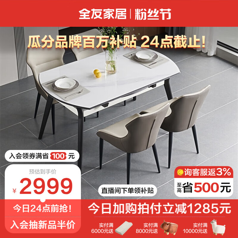 全友家居?轻奢钢化玻璃折叠餐桌椅组合可伸缩家用桌子饭桌家具DW1059价格:4284.29元!