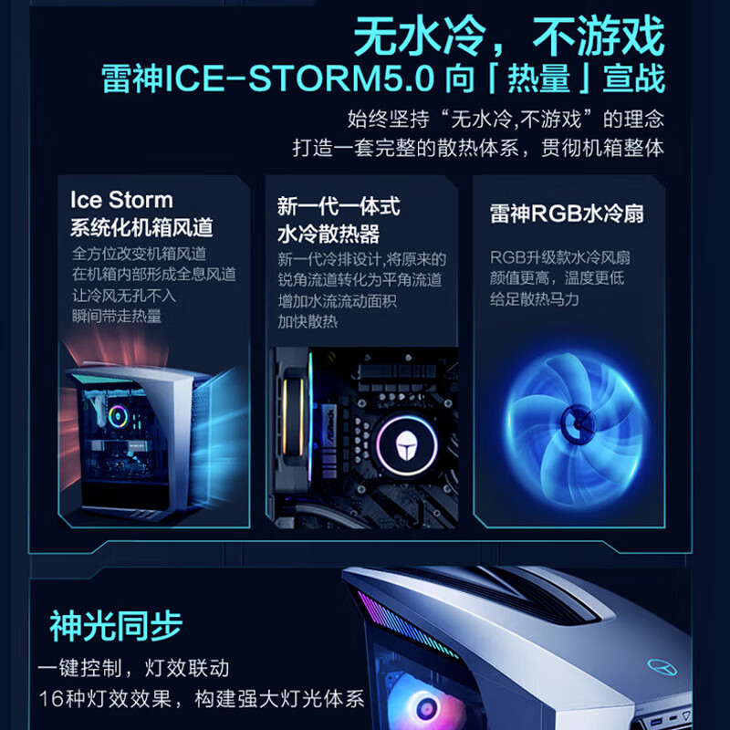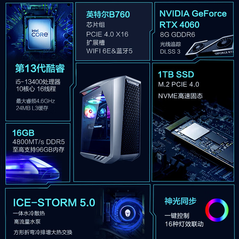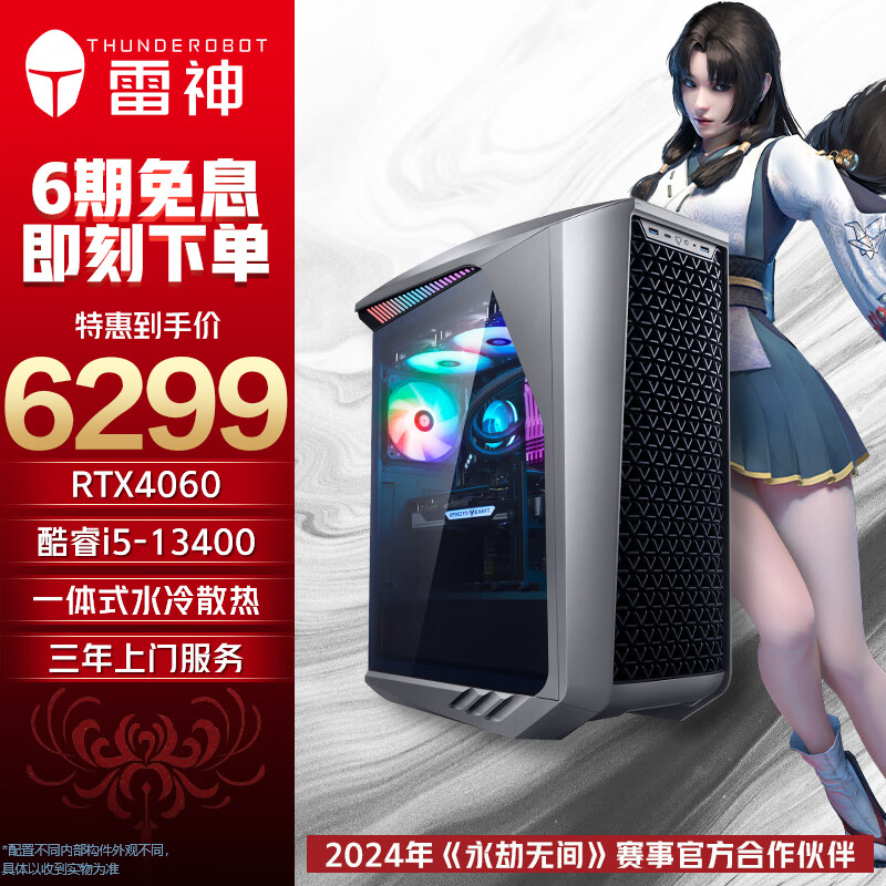 雷神(ThundeRobot)黑武士·Shark水冷游戏台式电脑电竞主机(13代i5-13400 16G D5 RTX4060 1TP4SSD 水冷散热)价格:6299.00元!