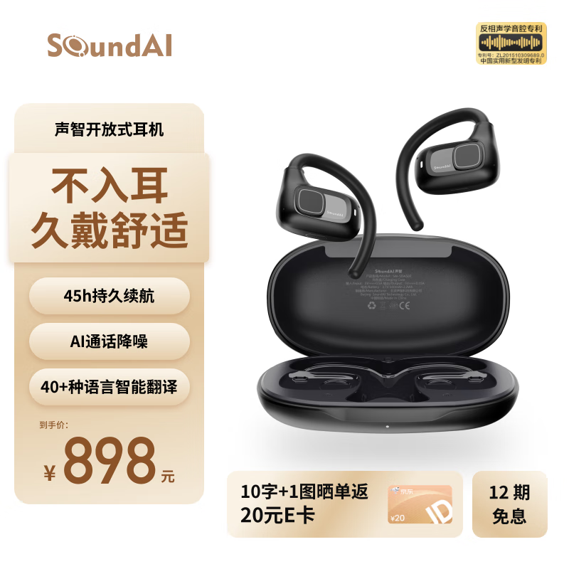 声智开放式真无线蓝牙耳机不入耳OWS蓝牙耳机运动长续航防漏音通话降噪可适用苹果华为云耳经典黑价格:1098.00元!