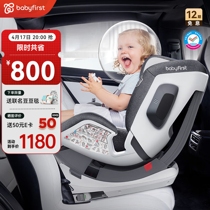 宝贝(Babyfirst)灵犀婴儿童座椅汽车用约0-4-7岁宝宝车载可躺 北极灰R160A价格:1480.00元!