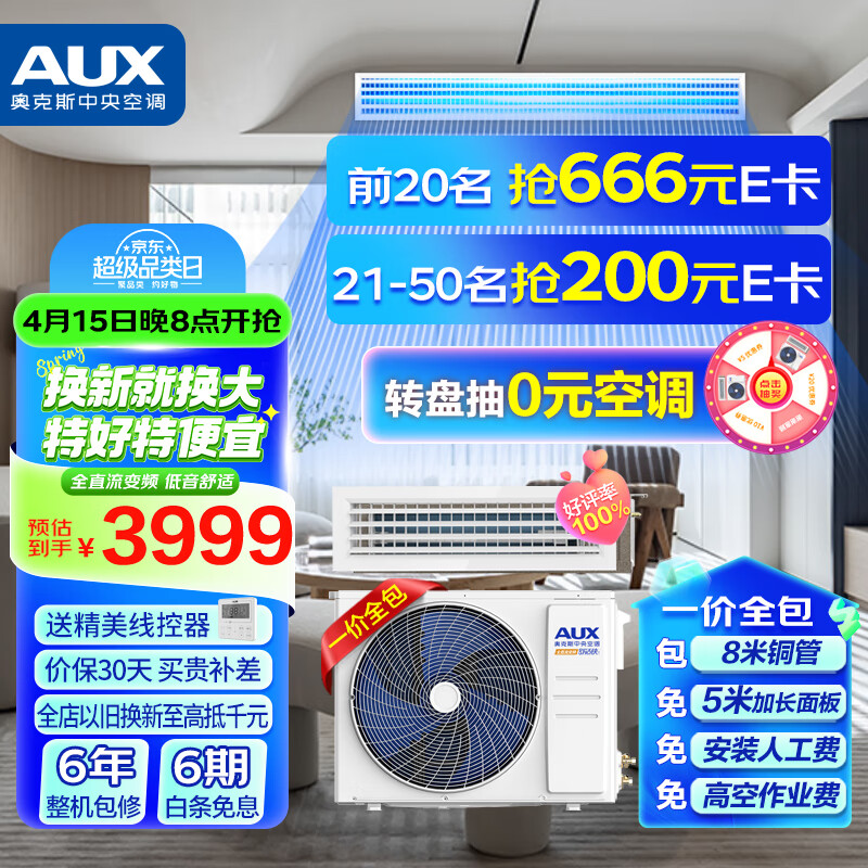 奥克斯(AUX)中央空调风管机一拖一1.5匹 全直流变频 卡机卧室嵌入式空调 舒适侠 GR-36DW/BPR3DQ-SSX(B3)价格:3999.00元!