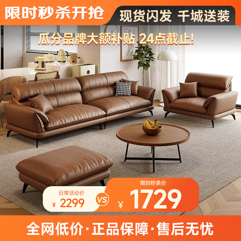 品族意式真皮沙发头层牛皮沙发客厅小户型直排沙发PZ-688 1.7米双a价格:1729.00元!