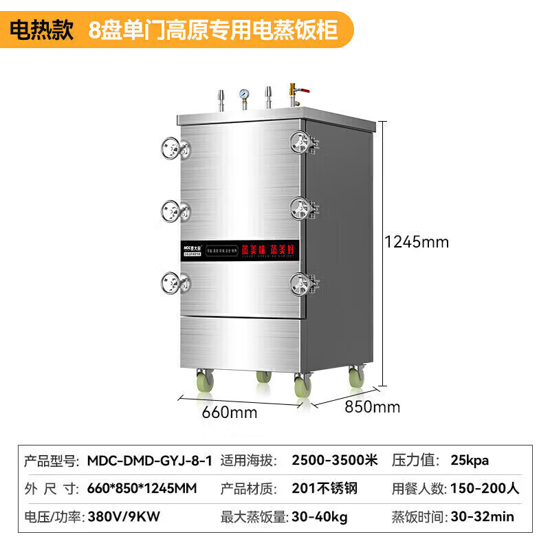 麦大厨 高原蒸箱蒸饭柜商用蒸包炉蒸馒头蒸饭车食堂酒店饭店厨房加厚发泡8盘电热 MDC-DMD-GYJ-8-1价格:4890.00元!