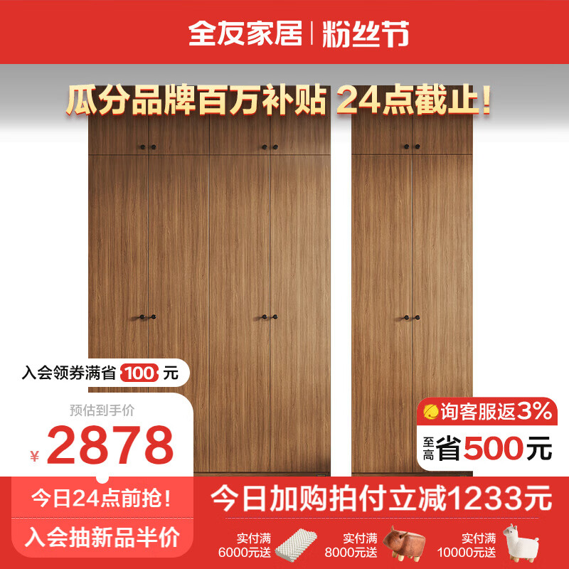 全友家居 二门四门衣柜简约风卧室衣物收纳多规格平开门家具DG10009价格:4111.43元!