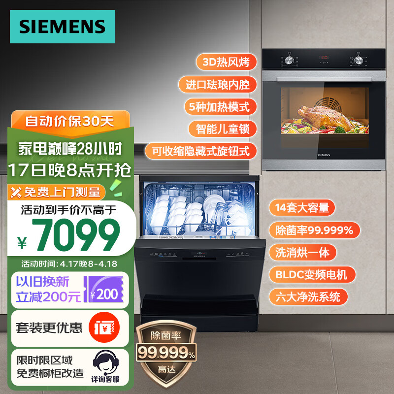 西门子洗嵌套装 14套大容量家用洗碗机+进口嵌入式烤箱组合套装 SJ23HB66KC+HB313ABS0W价格:7099.00元!