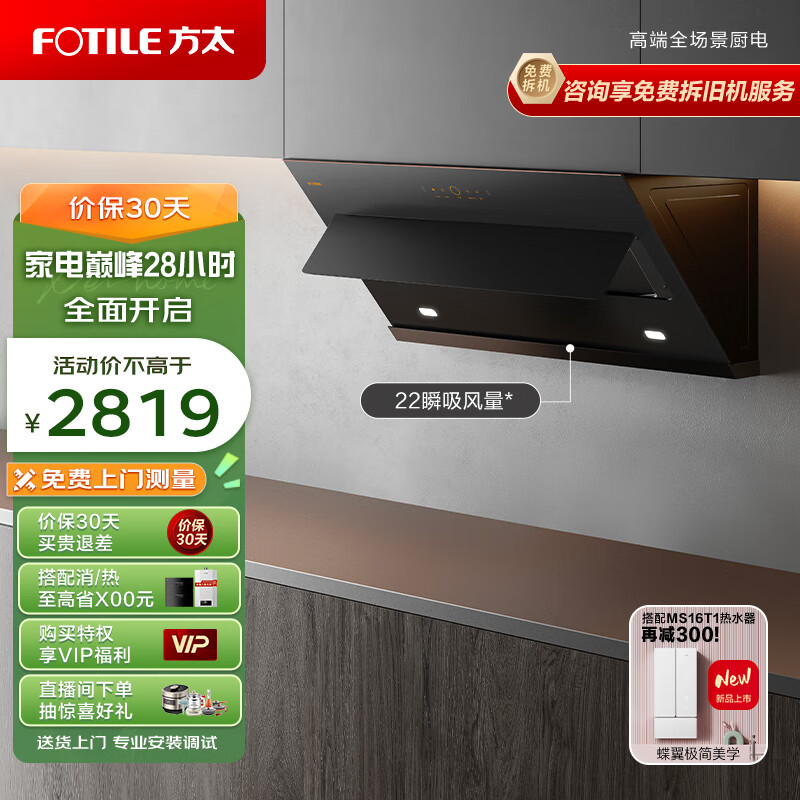 方太家用侧吸式抽油烟机 22瞬吸风量 挥手智控 小尺寸JCD9A价格:2819.00元!