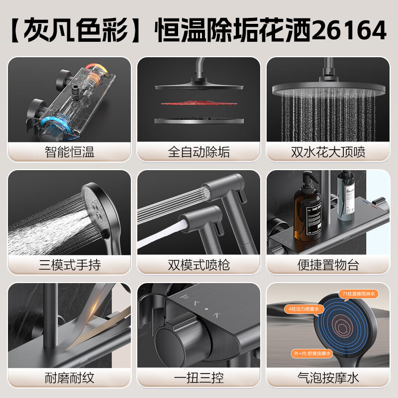 九牧(JOMOO)淋浴花洒套装枪灰色水氧除垢喷枪恒温淋浴器26164-644/HBS-1价格:1399.00元!