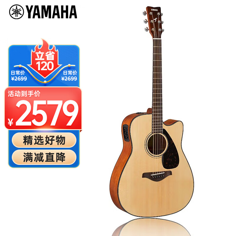 雅马哈(YAMAHA)FGX800C 电箱款 实木单板 初学者民谣吉他缺角吉它41英寸原木色价格:2699.00元!