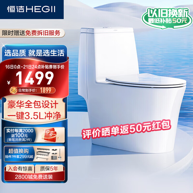恒洁(HEGII)马桶143 超旋风大冲力一键速冲连体坐便器HC0143DT(坑距400mm)价格:2259.00元!