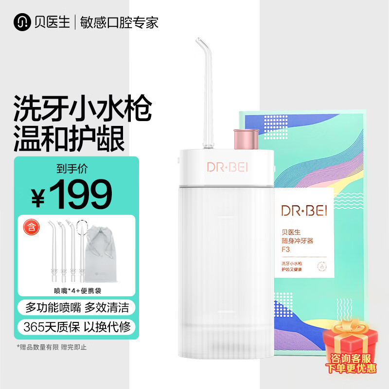 贝医生(DR·BEI) 正畸冲牙器便携家用洗牙器洁牙器水牙线清洁口腔牙套 国货旅行洗漱套装 清洁亮白护龈 送女友礼物 抽拉便携冲牙器F3【内配4喷嘴】 4支喷头价格:299.00元!