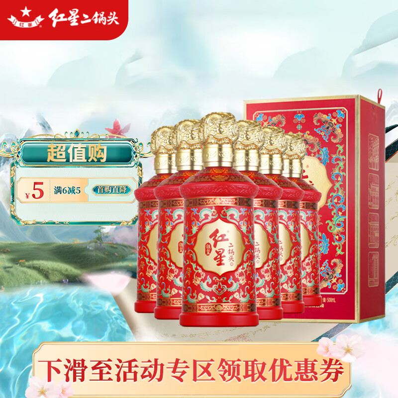 红星二锅头 鸿钰 清香型白酒 53度 500ml*6整箱装价格:2059.00元!