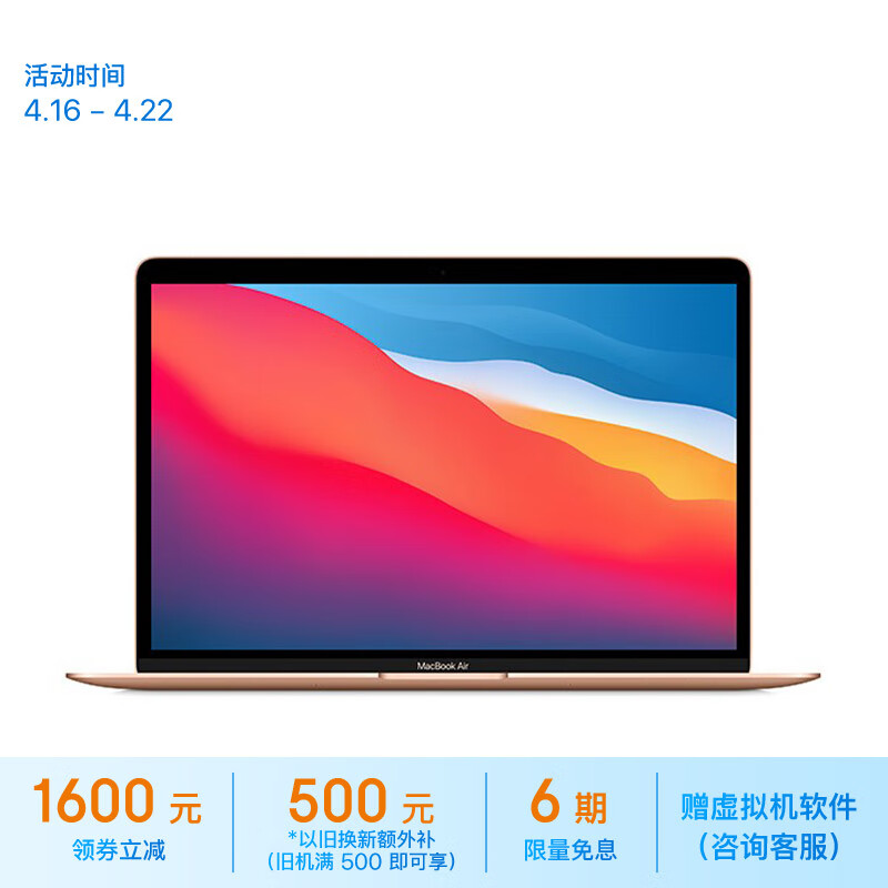 Apple/苹果2020款MacBookAir13.3英寸M1(8+7核) 8G256G金色轻薄学习办公笔记本电脑MGND3CH/A价格:7999.00元!