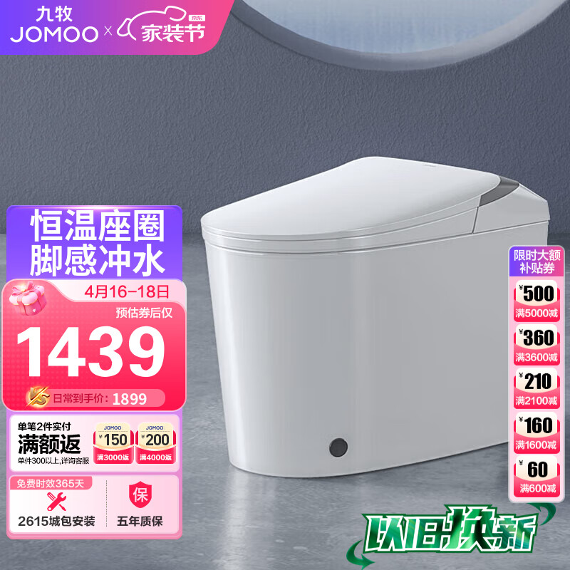 九牧(JOMOO)J11423-1-1/41K-1轻智能智感双冲恒温座圈虹吸马桶坐便器400坑距价格:1899.00元!