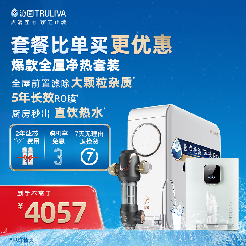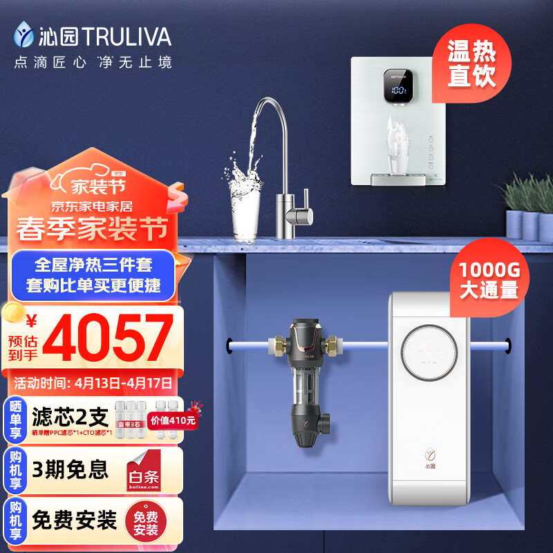 沁园(TRULIVA)小白鲸Pro1000G三件套装 净水器UR-S51046i+前置过滤器P-A5510+加热管线机LNW580-5W价格:4057.00元!