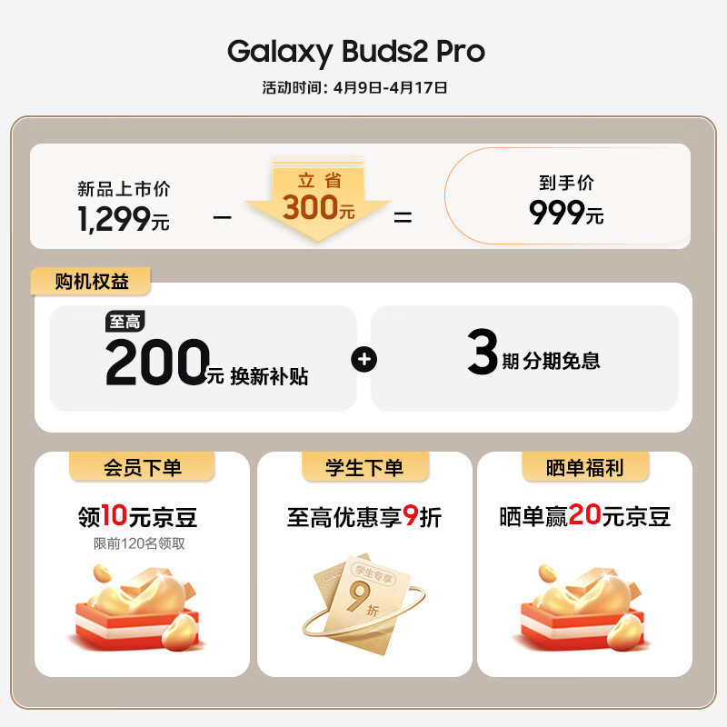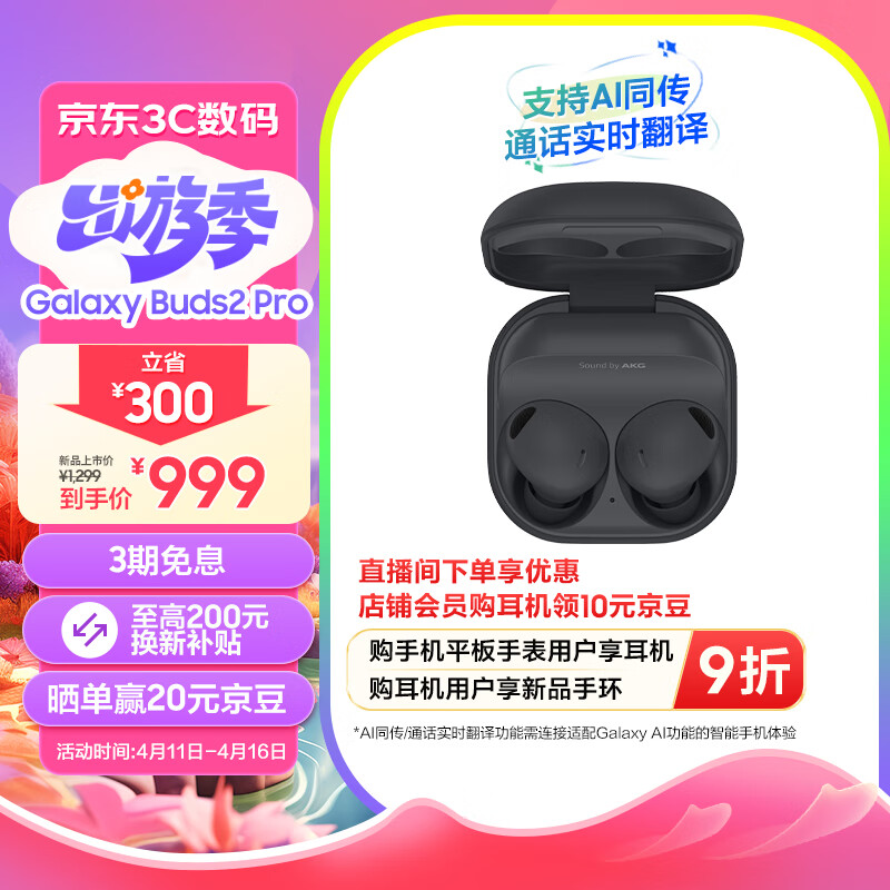 三星(SAMSUNG)Galaxy Buds2 Pro 智能主动降噪真无线蓝牙耳机/24bit高保真音频/IPX7防水/佩戴舒适 哥特太空价格:999.00元!