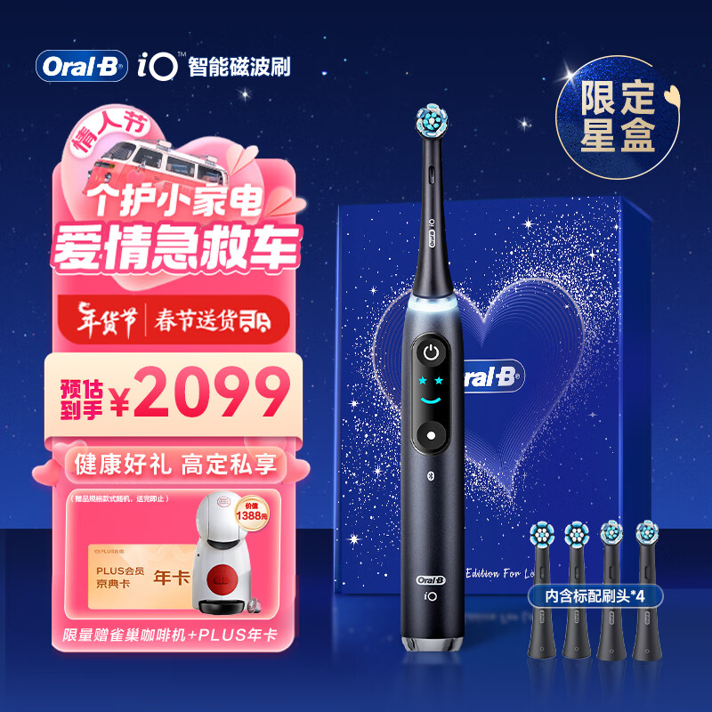 欧乐B成人电动牙刷iO9甄选礼盒AI全景磁波刷智能圆头iO系列送男友送女友生日礼物春节送礼情人节礼物价格:2099.00元!