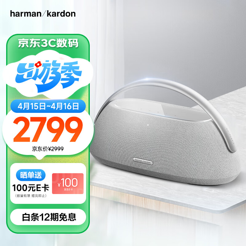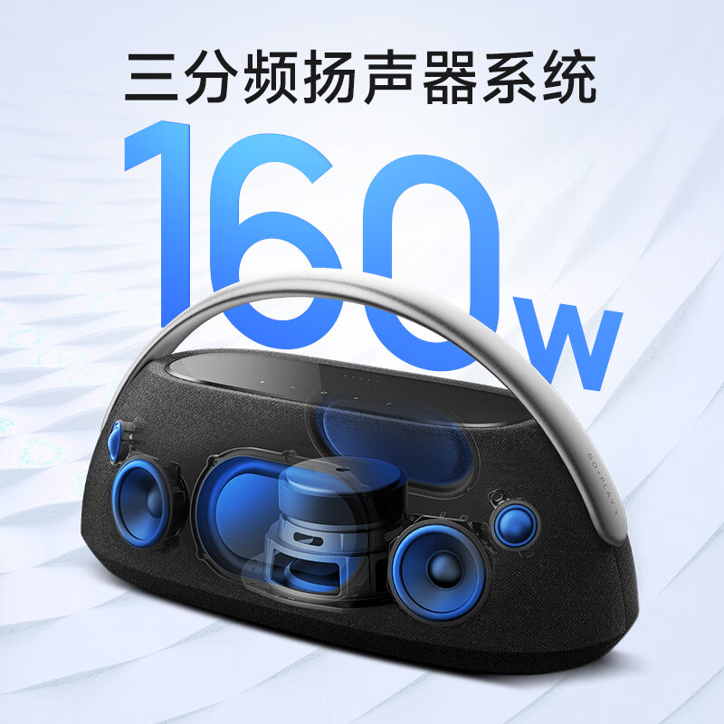 哈曼卡顿 GO+PLAY 3 边走边唱三代户外音响 便携蓝牙音箱 三分频设计 160W大功率 家用影院音响 银色价格:2999.00元!