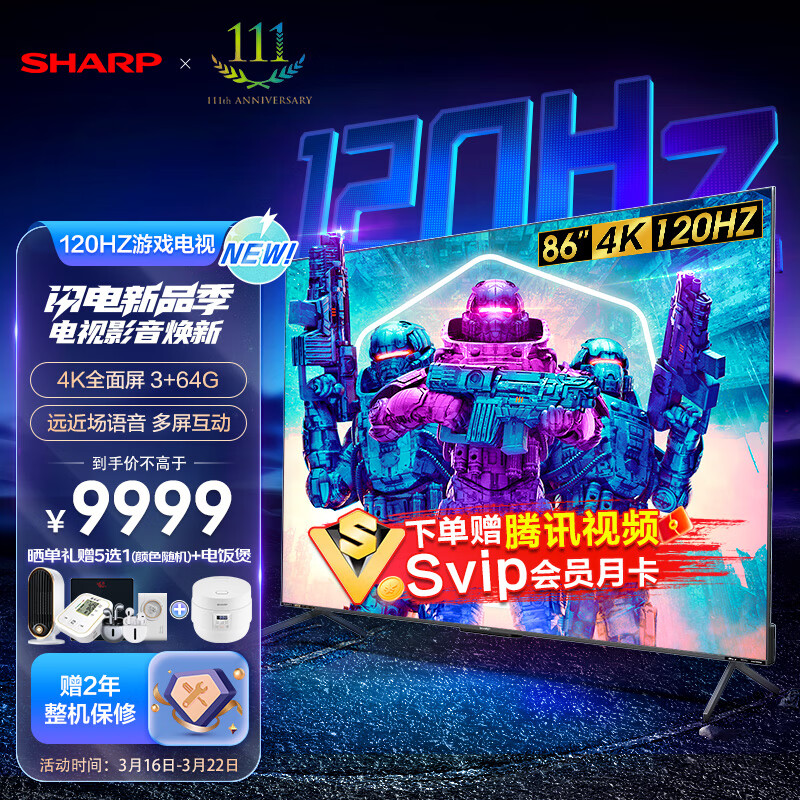 SHARP夏普电视4T-C86S7FA 86英寸120HZ液晶彩电4K屏3+64G游戏电视远近场语音多屏互动平板电视价格:9899.00元!