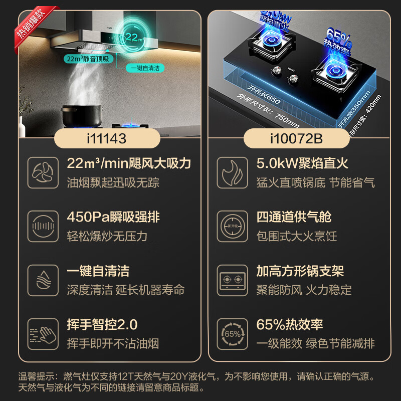 华帝(VATTI)抽油烟机家用静音大吸力烟机燃气灶烟灶套装22风量自动清洗欧式吸油烟机灶具套装i11143天然气价格:2699.00元!