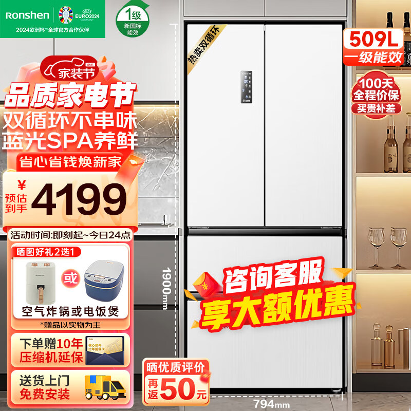 容声509升双系统循环变频一级能效法式多门四开门冰箱家用蓝光养鲜无霜除菌大容量白色 BCD-509WD18MP价格:4899.00元!