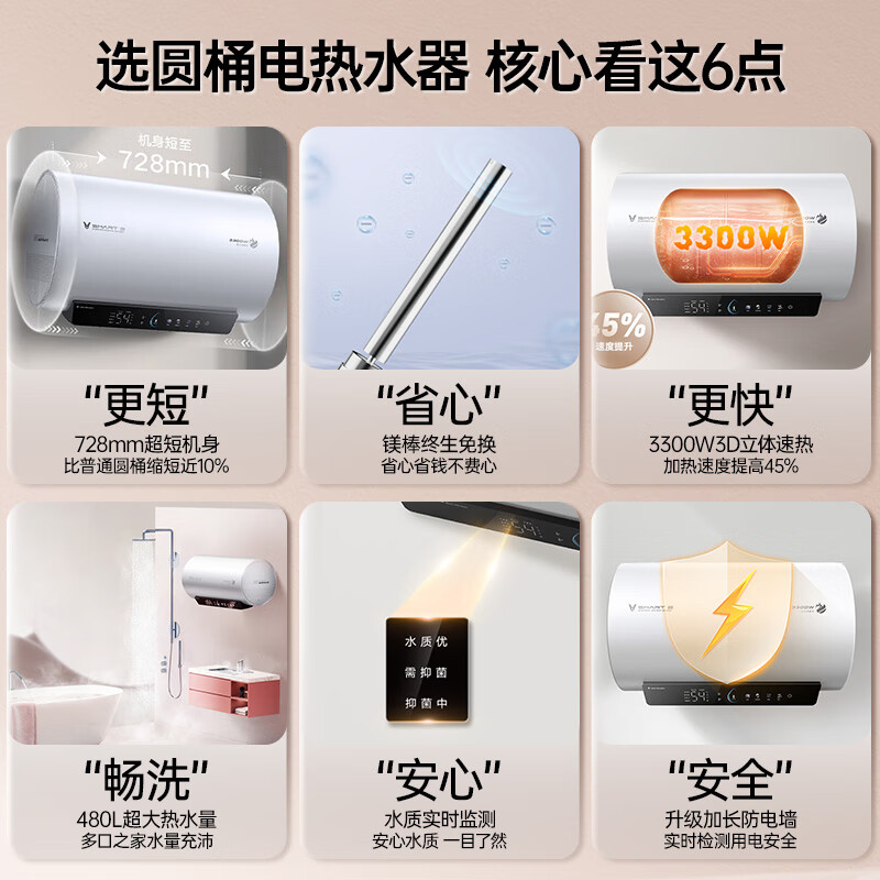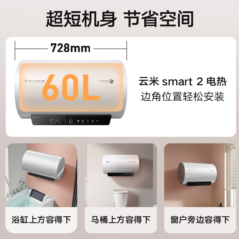 云米(VIOMI)电热水器一级能效节能省电双重防护家用60升3300W双管速热APP智控热水器 VEW6029价格:1299.00元!