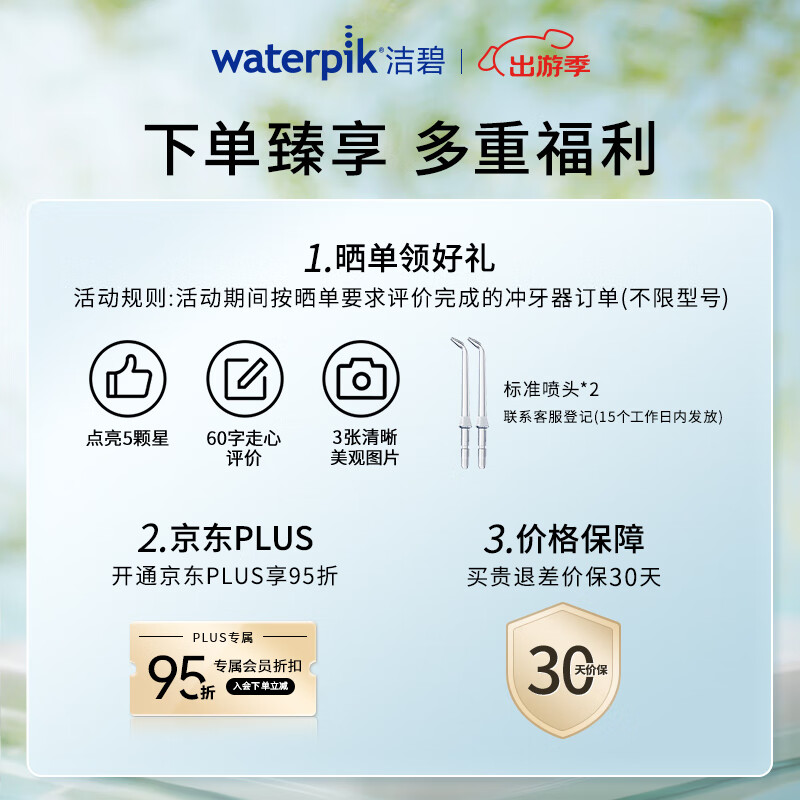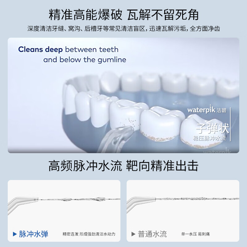洁碧(Waterpik)冲牙器便携式电动洗牙器水牙线洁牙器家用立式预防牙结石全身水洗【小火箭】洁净白 礼物价格:798.00元!