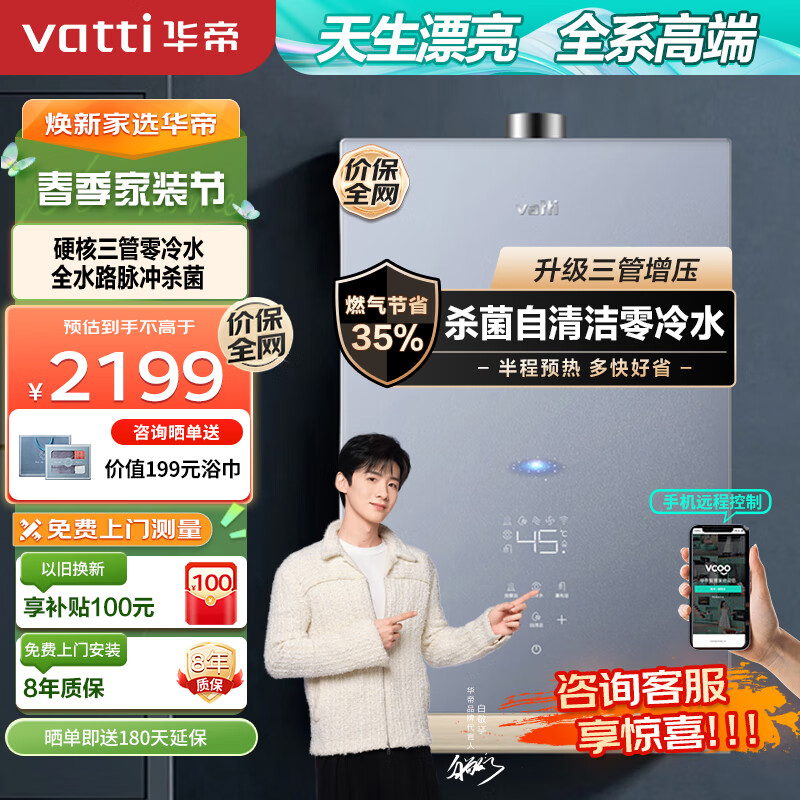 华帝(VATTI)16升燃气热水器天然气 家用即热式三管零冷水 AI智能洗 气电双断 SPA按摩浴i12201-16价格:2199.00元!