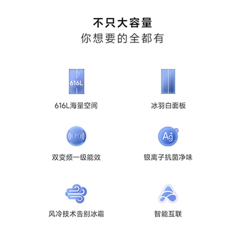 米家小米616L对开门大容量家用冰箱双开门 一级能效风冷无霜超薄嵌入银离子除菌 BCD-616WMSA价格:2499.00元!