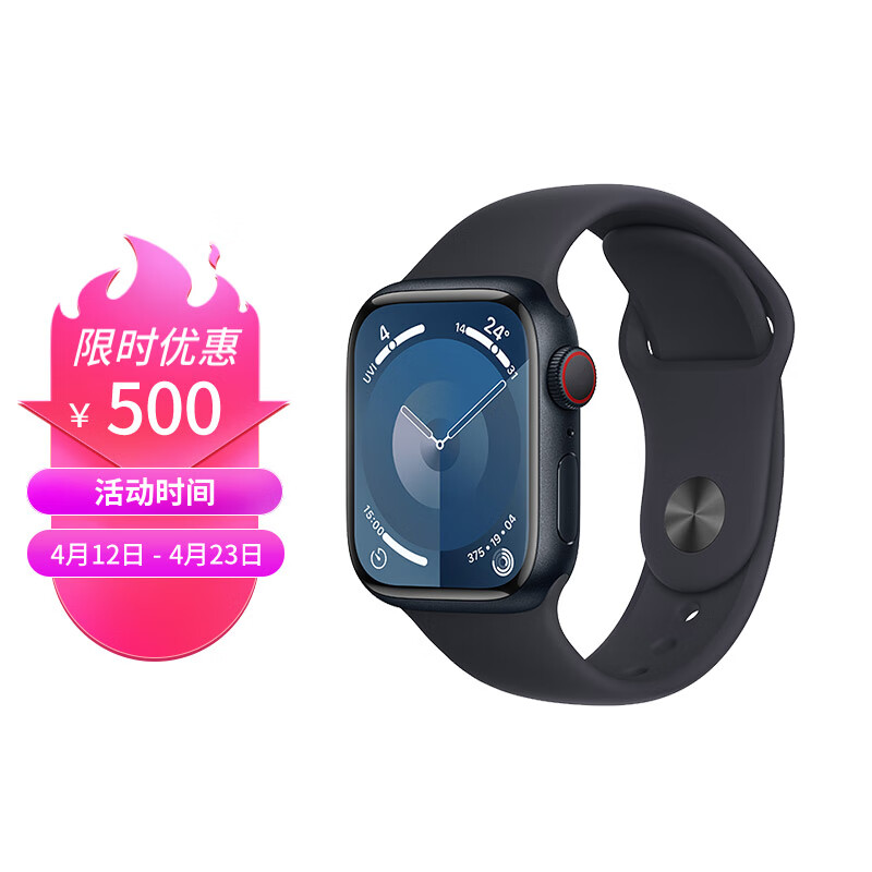 Apple Watch Series 9 智能手表41毫米午夜色铝金属表壳午夜色运动型表带S/M【蜂窝款】MRJH3CH/A价格:3299.00元!