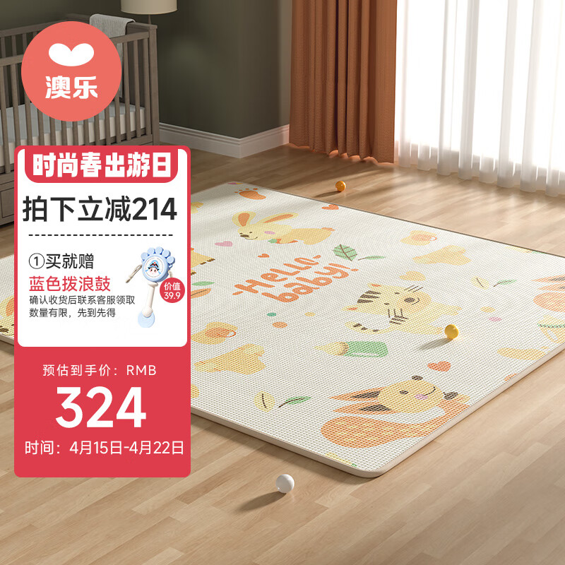澳乐宝宝xpe爬行垫加厚儿童地垫爬爬垫动物园+独角兽225*180*2cm礼物价格:538.00元!
