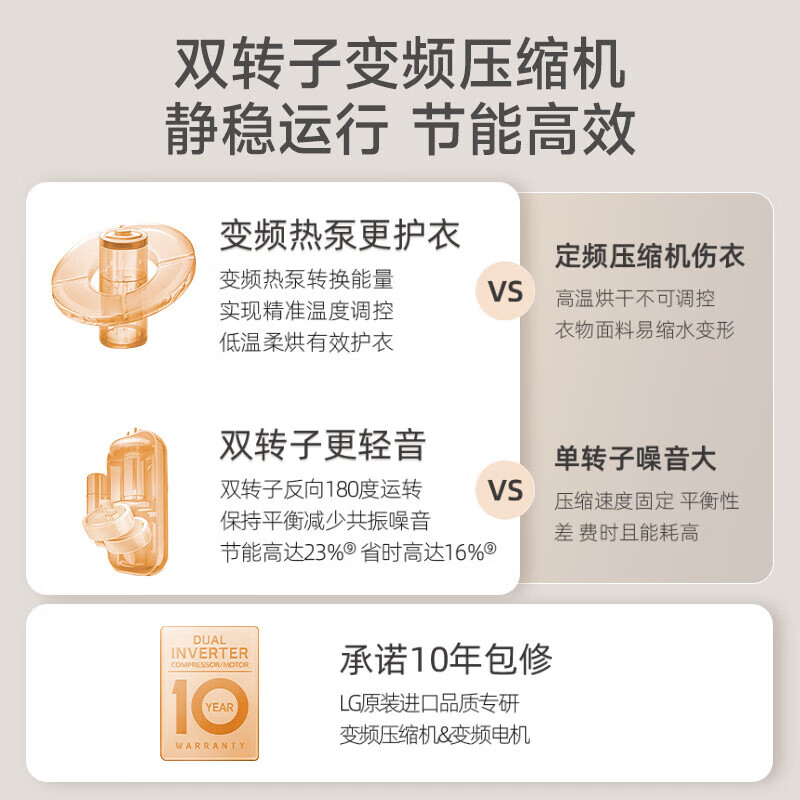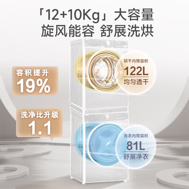 LG小旋风MAX洗烘套装 12kg滚筒洗衣机+10kg双变频热泵烘干机洗净比1.1 FCW12Y4WA+RH10V9AV2WR白价格:12399.00元!