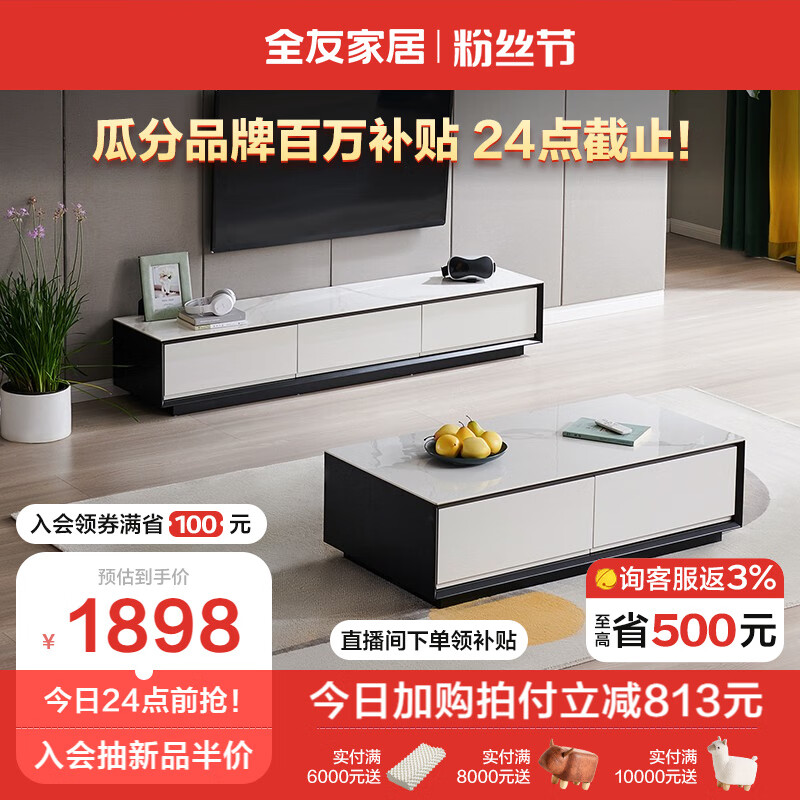 全友家居 茶几电视柜大小户型岩板茶台收纳附柜现代客厅家具DW1055价格:2711.43元!