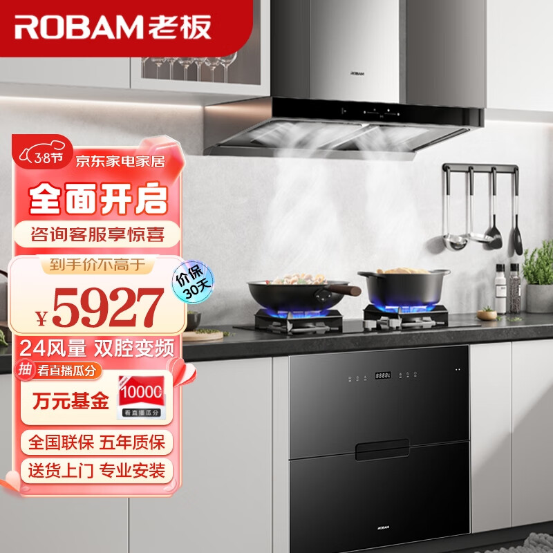 老板(Robam)厨房多件套抽油烟机欧式双腔变频24风量烟机灶具105L消毒柜烟灶消三件套60D3S+57B2DT+XB710A价格:5927.00元!