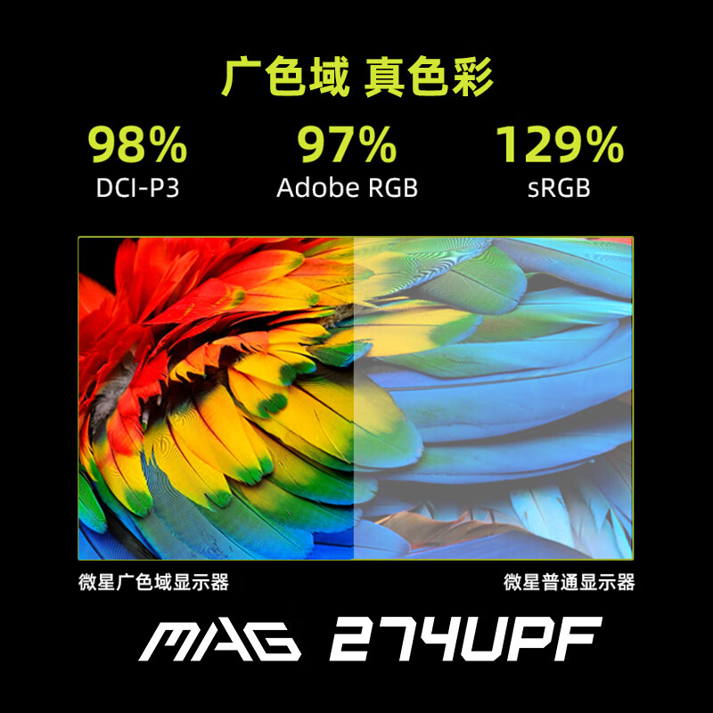 微星(MSI)27英寸 4K 144Hz HDR400 1ms(GTG) ADS Pro面板 HDMI2.1 65W Type-C 游戏电竞显示器屏 MAG 274UPF价格:2999.00元!