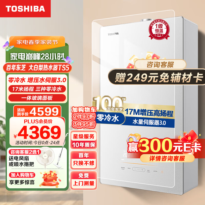 东芝燃气热水器16升 天然气12T 增压零冷水 日本原装CPU 水量伺服器 3D恒温 婴儿 JSQ30-TS5 大白梨价格:4599.00元!