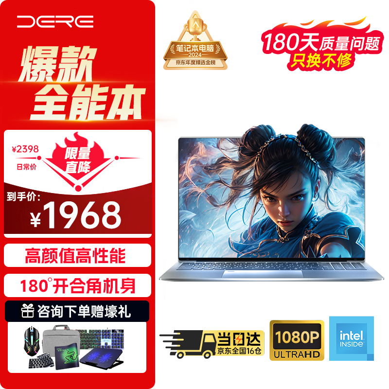 戴睿(dere)商务旗舰16英寸笔记本电脑商务轻薄学生网课设计学习办公游戏绘图手提 英特尔16G + 512G 琥珀银价格:1968.00元!