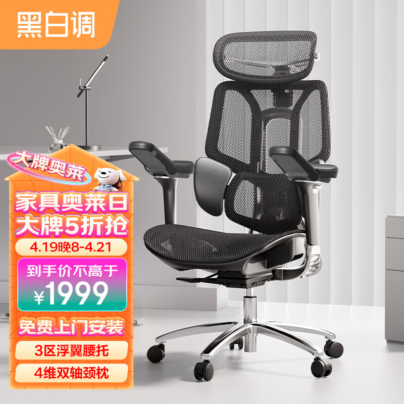 黑白调E3结构大师Pro 人体工学椅 电脑椅子久坐办公椅 电竞椅 老板椅价格:2199.00元!