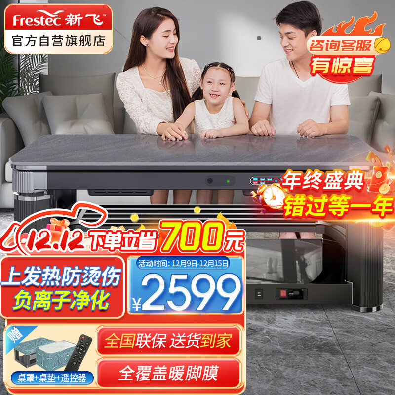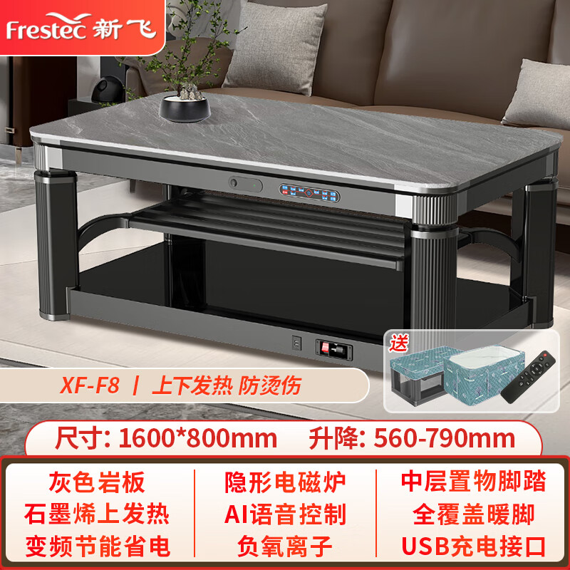 新飞电暖桌1.6米石墨烯发热体取暖桌语音控制升降取暖茶几家用长方形电烤火桌电暖炉客厅餐桌XF-F8价格:4248.00元!