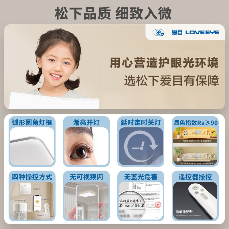 3、货到好几天了,安装师傅一直比较忙,直到今天才安排上,一装完就赶过来发表评论意见,京东的速度,超级快,上午十点下单,下午三点就到货。松下的质量,灯光效果个人觉得非常满意,与房间装修风格非常搭。