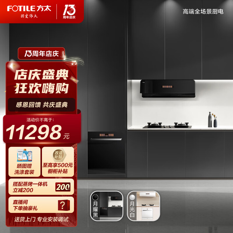 方太(FOTILE)烟灶洗三件套 24巡航风量变频油烟机 5.0kW猛火灶 15套嵌入式洗碗机 F1A+THF1A+VF1.i价格:11298.00元!