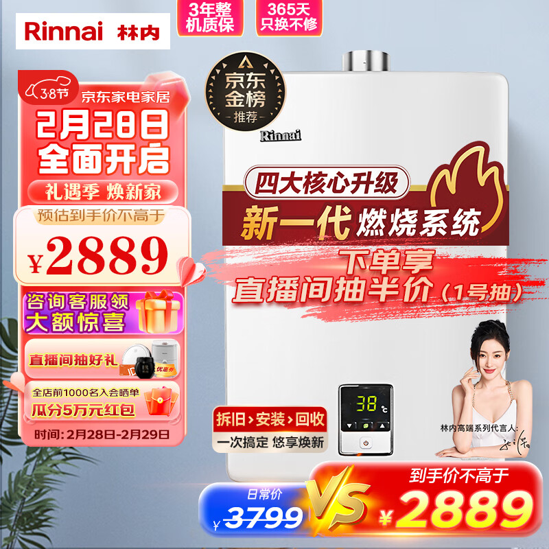 林内(Rinnai)16升恒温 水气双调 ECO节能 防冻 燃气热水器RUS-16QD01(天然气)家电价格:2889.00元!