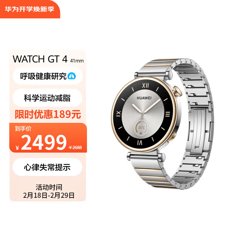 华为WATCH GT4华为手表智能手表呼吸健康研究心律失常提示华为gt4手表皓月银支持龙年表盘价格:2469.00元!